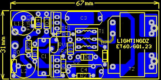 L1、L2、C1组成EMC网络,一方面可以防止本机干扰泄漏到电网,另一方面又可以抑制从电网窜入的各种干扰信号。RV1是压敏电阻,用来旁路电网上的瞬间过压,以保护后级电路。T1选用φ10mm的磁环,N1、N3绕4匝,N2绕1匝,漆包线全部采用φ0.3mm线径;T2使用EE28磁芯,N1用φ0.3mm漆包线绕120匝,N2用φ1.0mm漆包线绕12匝,磁芯不留气隙,组装后须用树脂浸渍处理。