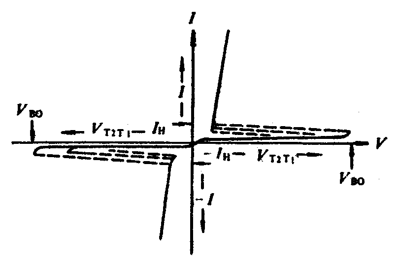 双向晶闸管的伏发特性见图3,由于正、反向特性曲线具有对称性,所以它可在任何一个方向导通。