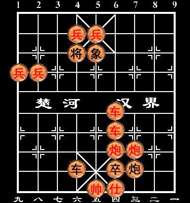 1. 炮四进五 象5进7 2. 后车平六 车4退2 3. 士四进五 炮7平5 4. 炮三退二 炮5退5(黑胜) 还没见过你这么一厢情愿的,会不会解残局?第三回合,红方支士,黑方为什么要炮7平5?仍旧回车,车4进2,形势同刚开始时一样。红还白损一车,没见过你这么幼稚的。 作者:wanglh126 回复日期:2006-5-27 20:16:00 作者:枉少年 回复日期:2006-4-30 11:33:00 晕,没看清,红重跑的时候黑可以回炮打炮。fjrzxf 说得对。 ---------------------------------------------------------- 红重炮将军是绝杀,黑回炮打炮有何用? 天下第一丑男的是正解。 此外补充:红方弃双车后应上三路炮先将,再上四路炮,这样黑方飞河边象也无法阻挡。 真笑话啊,如果打得充当炮架的那个炮,自然解不了,可现在打得是三路炮啊,没了这炮就不存在将军了。另外,重炮将并不一定都是绝杀,有三种情况杀不了。一是将离炮控线,二是充当炮弹的炮被吃掉,三是两炮之间有空隙,对方可以卡子。