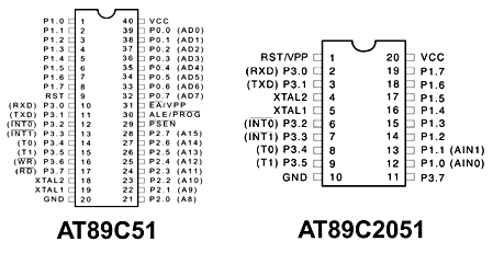 *工作电压为5V,另有AT89LV51工作电压则是2.7-6V, 引脚功能一样。