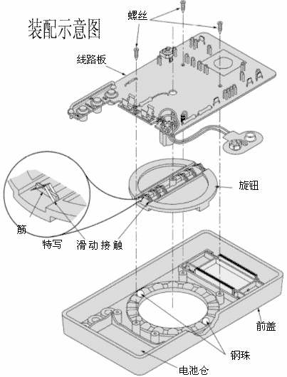 放置拨盘入面盖中,注意拨盘的弹簧孔对准面盖上的钢珠。