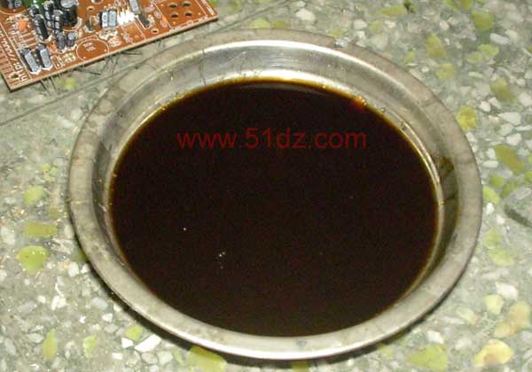如果条件都没有的话,就只有通过经验来决定了。大家可以看见图中熔化的锡象镜子一样反光,有清晰的倒影。(用干硬纸皮拨开锡面一个空间)。