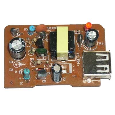 USB充电器套件,又名MP3MP4充电器,输入AC160-240V,50/60Hz,额定输出:DC 5V 250mA(标签贴纸为500mA,如果要长期输出更大电流,请更换Q1为13003)。MP3和MP4在全国范围大量流行,不过作为日常用品的充电器由于直接和220V高压相连,具有故障率较高,容易损坏的特点,特别是买到那些不成熟的产品后,真是苦不看言。最后,受学校老师委托,我们联系到了一款成熟量产的充电器套件,现在一同给广大电子爱好者分享。