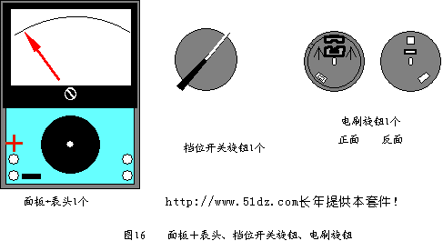 7.7 面板+表头、档位开关旋钮、电刷旋钮(见图16)及电池盖板。