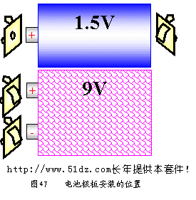 电池极板安装的位置(见图47)。平极板与突极板不能对调,否则电路无法接通。