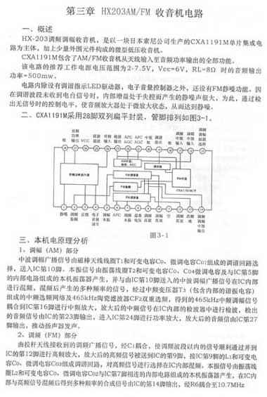 该收音机套件采用的1191双列28脚贴片封装的集成电路为主体,加上一些外围元件构成的微型低压收音机, 学校可以根据这个电路来讲解集成电路收音机的工作原理和知识, 这跟市面上的销售调频调幅收音机原理大同小异。1191包含了AM/FM收音机从天线输入至音频功率输出的全部功能。