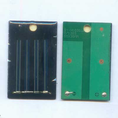 太阳能电池是通过光电效应或者光化学效应直接把光能转化成电能的装置。体积大小55*35mm,2V 50mA。