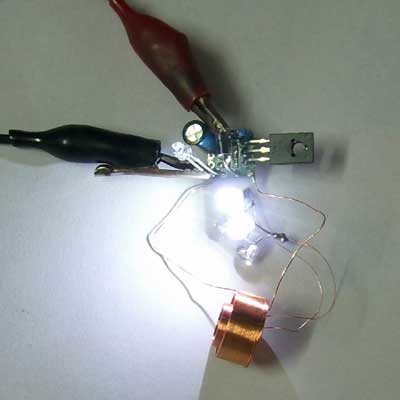两个空心线圈套到一起了,发光二极管发出强有力的白光!请注意千万将电压调高,否则发光二极管可能会被烧坏的!如果用户的发光二极管烧坏了,欢迎再来本站购买,虽然本站售价偏贵,但该怎么算还是怎么算!