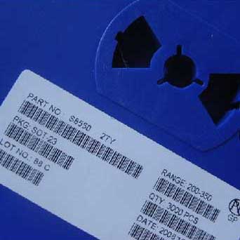 贴片三极管S8550 ,10个1元。封装:SOT-23;8550上面印字 2TY ,8050上面印字 J3Y,贴片的全部是BCE,三角形尖向上,最左边的为B极,上边为C极、右边为E极,不管是SOT-23封装的还是SOT-89封装的都是一样的。放到品字形状,顺序为B(左面基级). C(上面集电级).E(右面发射级) 。