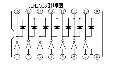 ULN2003高耐压,大电流达林顿陈列,由7个硅NPN的达林顿管组成。 该电路的特点如下:ULN2003 的每一对达林顿都串联一个2.7K 的基极电阻,在5V 的工作电压下它能与TTL 和CMOS 电路直接相连,可以直接处理原先需要标准逻辑缓冲器来处理的数据。ULN2003 工作电压高,工作电流大,灌电流可达500mA,并且能够在关态时承受50V 的电压,输出还可以在高负载电流并行运行。