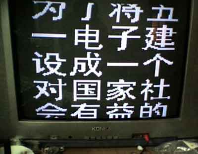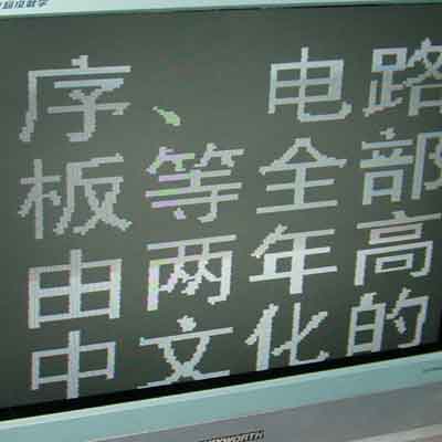 这是用好一点的电视机显示出来的近景图,大家可以看到字体笔画的边缘过渡地方的方块或者锯齿!本问题是没有办法解决的,毕竟本产品属于一个低价位的创意性的娱乐好玩的产品。