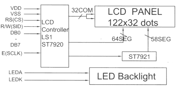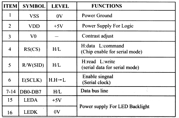 16K位半宽字型ROM(HCGROM),总共提供126个西文字型(16×8点阵)