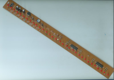 音乐声控电平指示灯套件:随着音乐的声音的大小两边的发光二极管会随着闪动。电路板上有标元件参数,电路原理图请点击/p/09/d/mu2004.gif 电路板的规格:长320mmx宽30mm。本站配的IED灯都是红色的,大家可以根据自己的爱好,配不同颜色的灯,闪出的效果将会不一样。其它颜色的灯本站有单独销售。