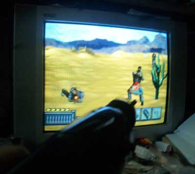 本游戏机采用电子芯片控制技术,可以在电视机上显示出稳定的彩色图像,进入游戏画面后,在显像管电视机上,还可以显示红色十字光标,用枪可以控制光标移动,扣动板机可以完成射击功能。
