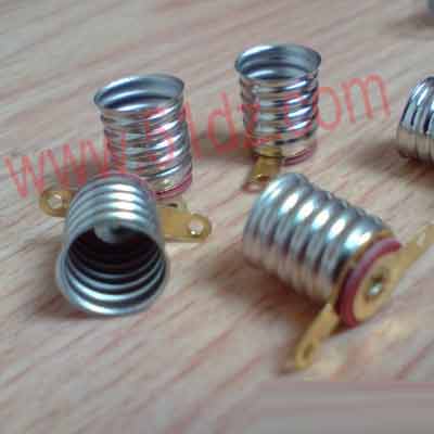 E10螺口2脚灯座,配本站2.5V0.3A小灯泡或3.8V0.3A小灯泡或12V5W或12V0.1A小灯泡,小电珠都可以。壳体根据批量客户决定,有时镀银,有时镀铜。所以发货外壳颜色有可能会不一样,功能是一样使用。