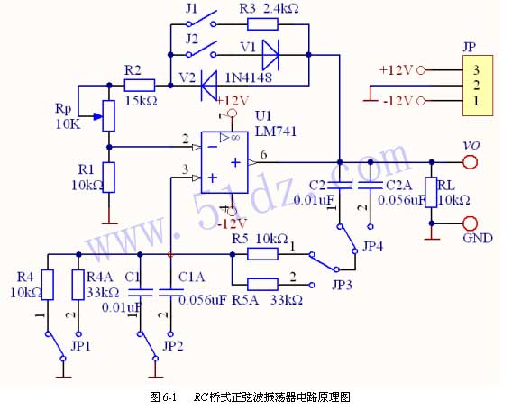 图6-1   RC桥式正弦波振荡器电路原理图