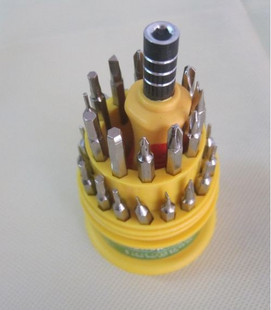 手机工具 31合1 组合螺丝刀套件 拆机工具 维修工具 家用日常工具  T6 螺丝刀:该螺丝刀套件配备的螺丝刀型号齐全,超强拆机工具一个螺丝刀柄可以配30支不同头,合1桶装工具盒一套。规格有:●一字:1.0 1.5 2.0 2.5 3.0 4.0 ● 十字:PH00 PH0 PH1 PH2  ●梅花:T4 T5 T6 T7 T8 T9 T10 T15 T20   ●三叉: 3.0  还有其它什么型的: ●3.0 2.0  ●2.6 ●1.5 ●1.0 ●:H1.5 H2.0 H2.5 H3.0 H4.0