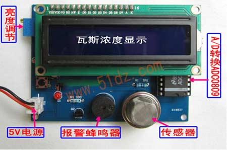 瓦斯浓度检测1602显示报警实验套件是由单片机AT89S52与MQ智能瓦斯传感器为核心,包含甲烷浓度采样器、LCD显示器和报警装置等组成。该检测仪可以有效的监测低浓及高浓瓦斯,试用范围非常广泛。监测到的信息传输到单片机,经单片机处理后发出指令,如果瓦斯超过规定值,该系统可以立即发出声光报警。该系统可有效的降低瓦斯事故发生率,结构灵活,扩展性强,具有较高的性价比,性能优良,是学习单片机  电子制作实训很好的选题。