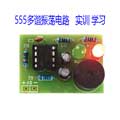 <本套件电路的核心部件是555集成定时器,它工作于无稳态工作方式,接通电源后,555集成定时器的输出端第3管脚不断地输出高低电平的方波信号,高电平点亮一个LED,低电平点亮另一个LED,所以看到的就是两个红绿颜色的LED不断地交替闪烁,蜂鸣……