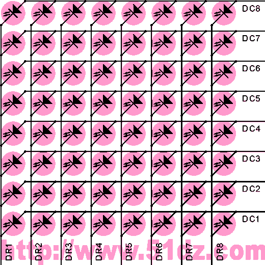 (1). 8X8 点阵LED工作原理说明